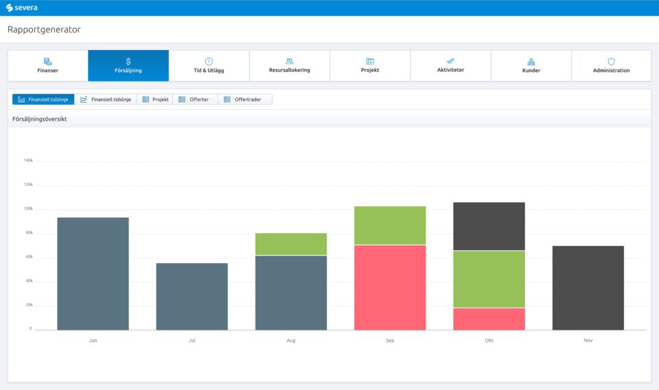 Med Severa integrerar du utvecklarnas programvara i ett sammanhängande system, vilket gör att du kan följa dina projekts framsteg, nyckeltal och förbättra affärsverksamheten med Severas verktyg.
