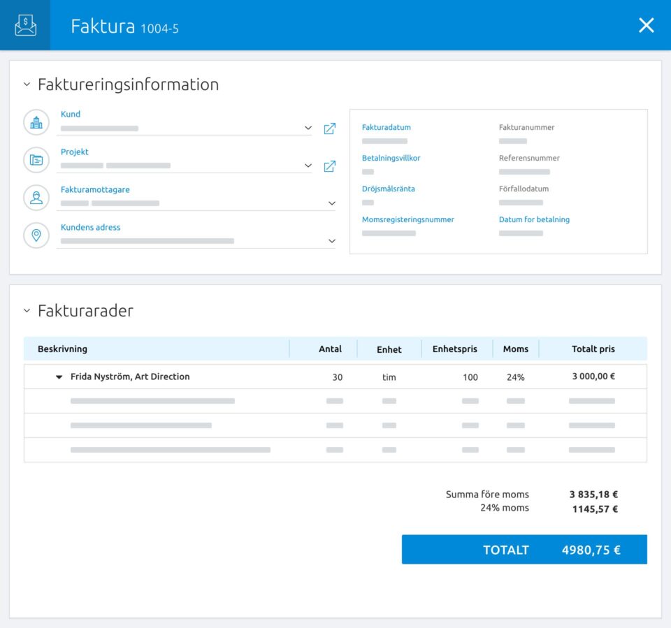 Skapa en faktura. Prova själv.
